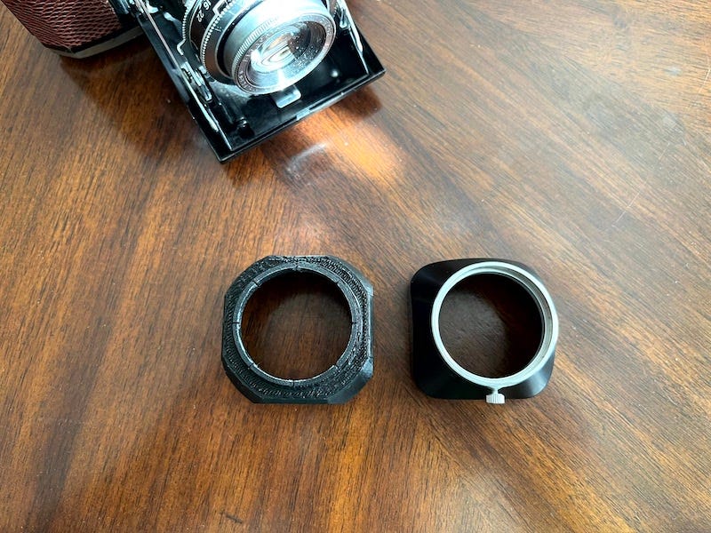 Lastly, an accessory that I made out of necessity was a Mamiya Six lens hood. I tried to incorporate a small filter thread in there, but I haven’t screwed in any filter with success yet. I left it as is in the project file and keep printing them for sale, since no one makes them.